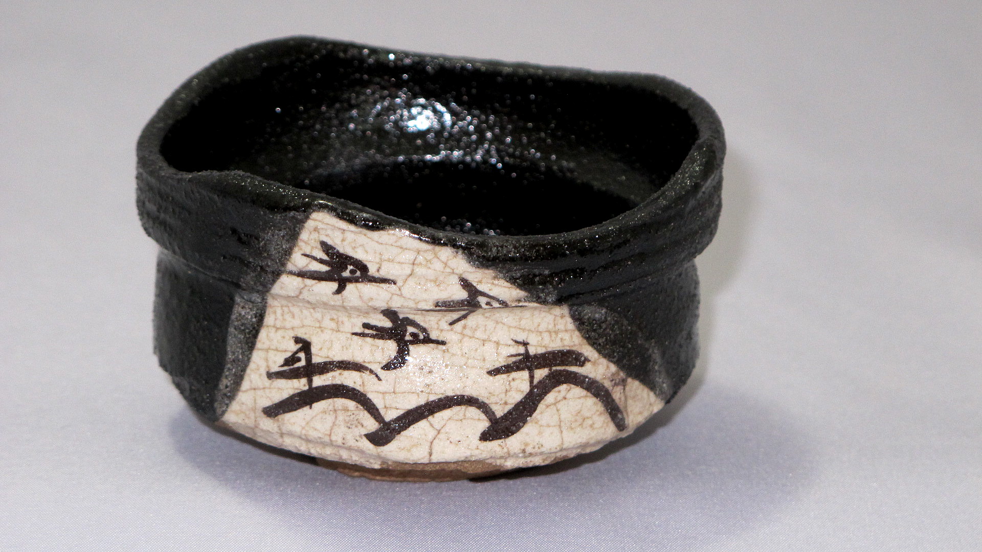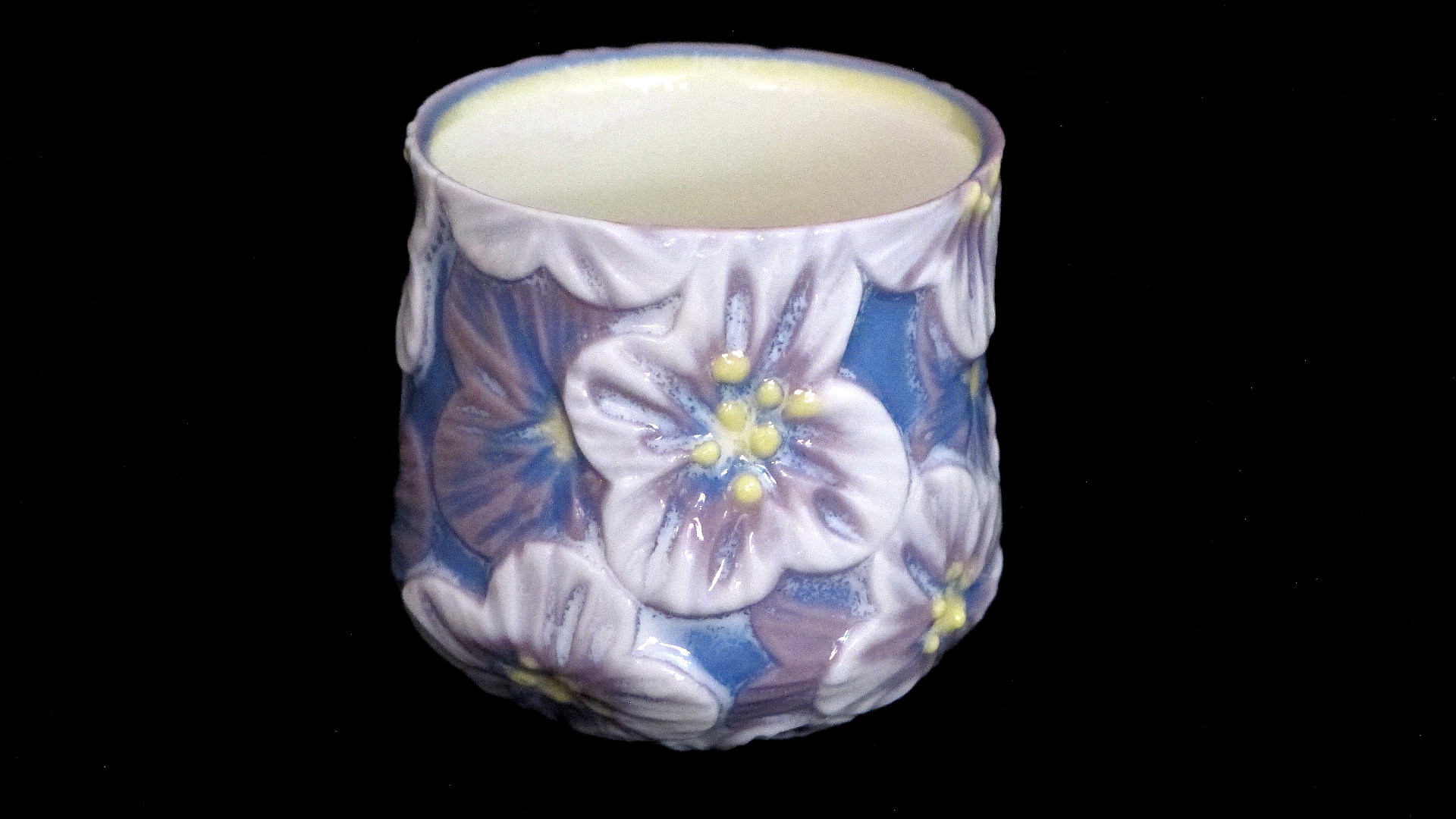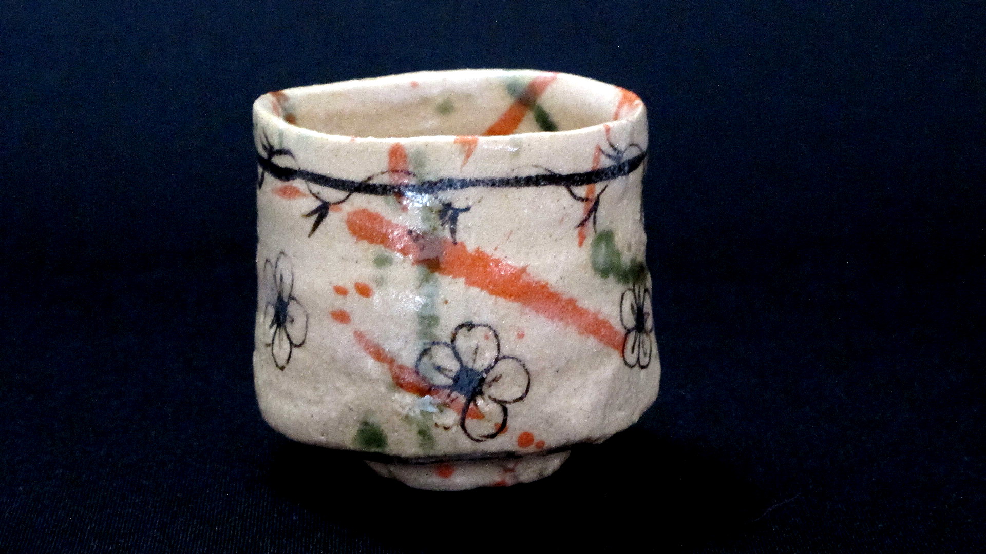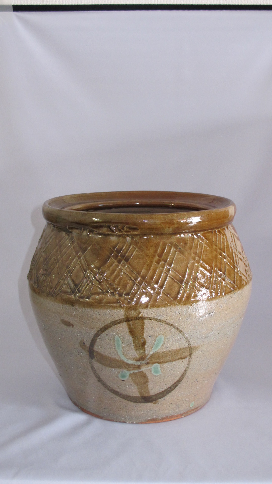 ![]() 鉄釉銅彩山帰来文ジョッキ