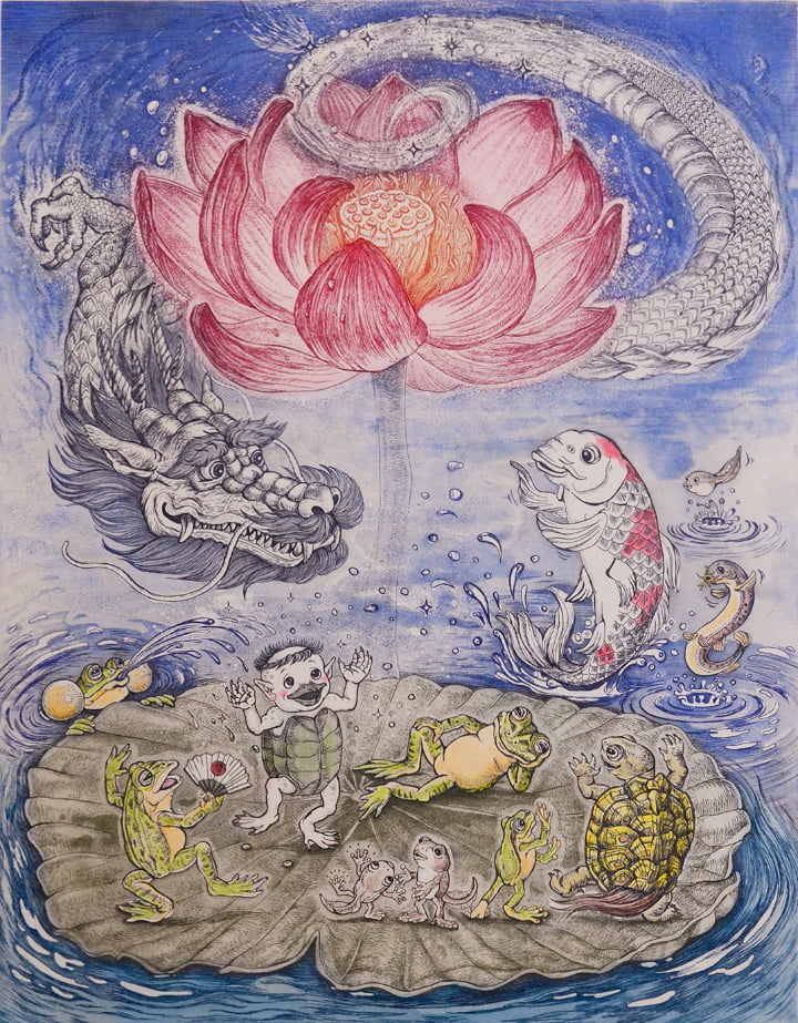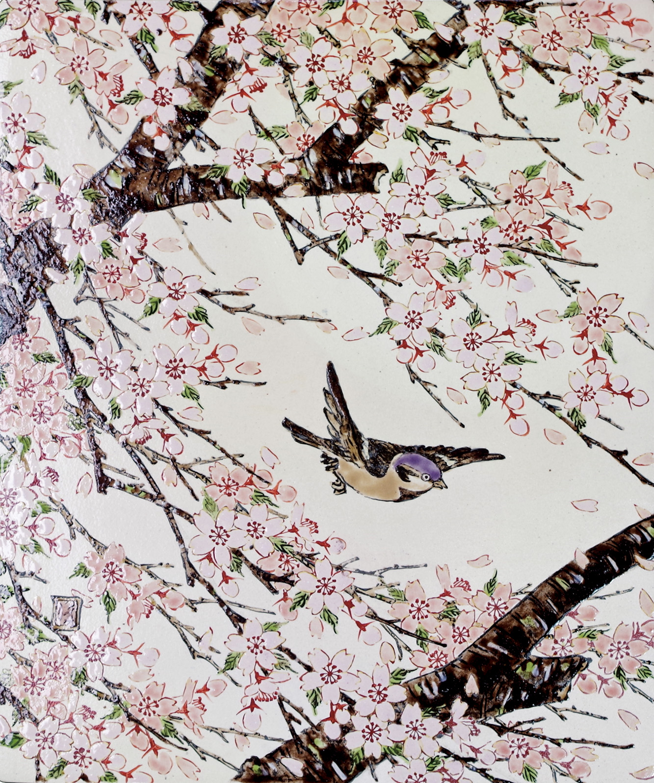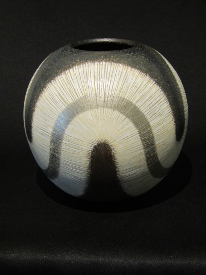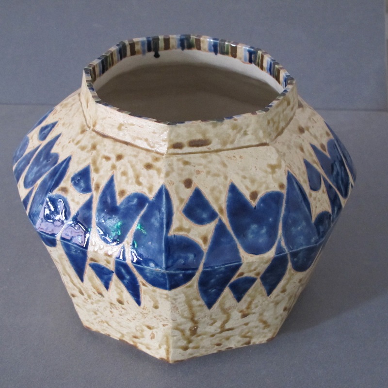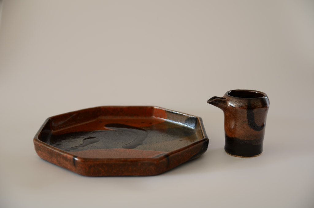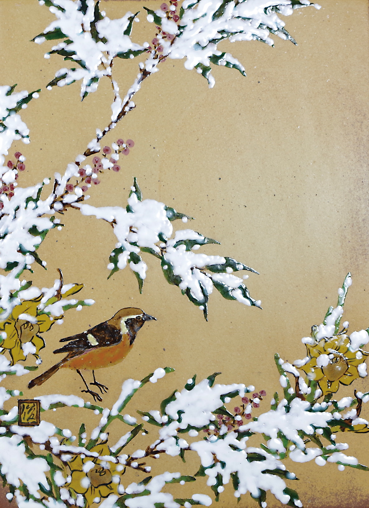 ![]() 鉄釉銅彩山帰来文ジョッキ